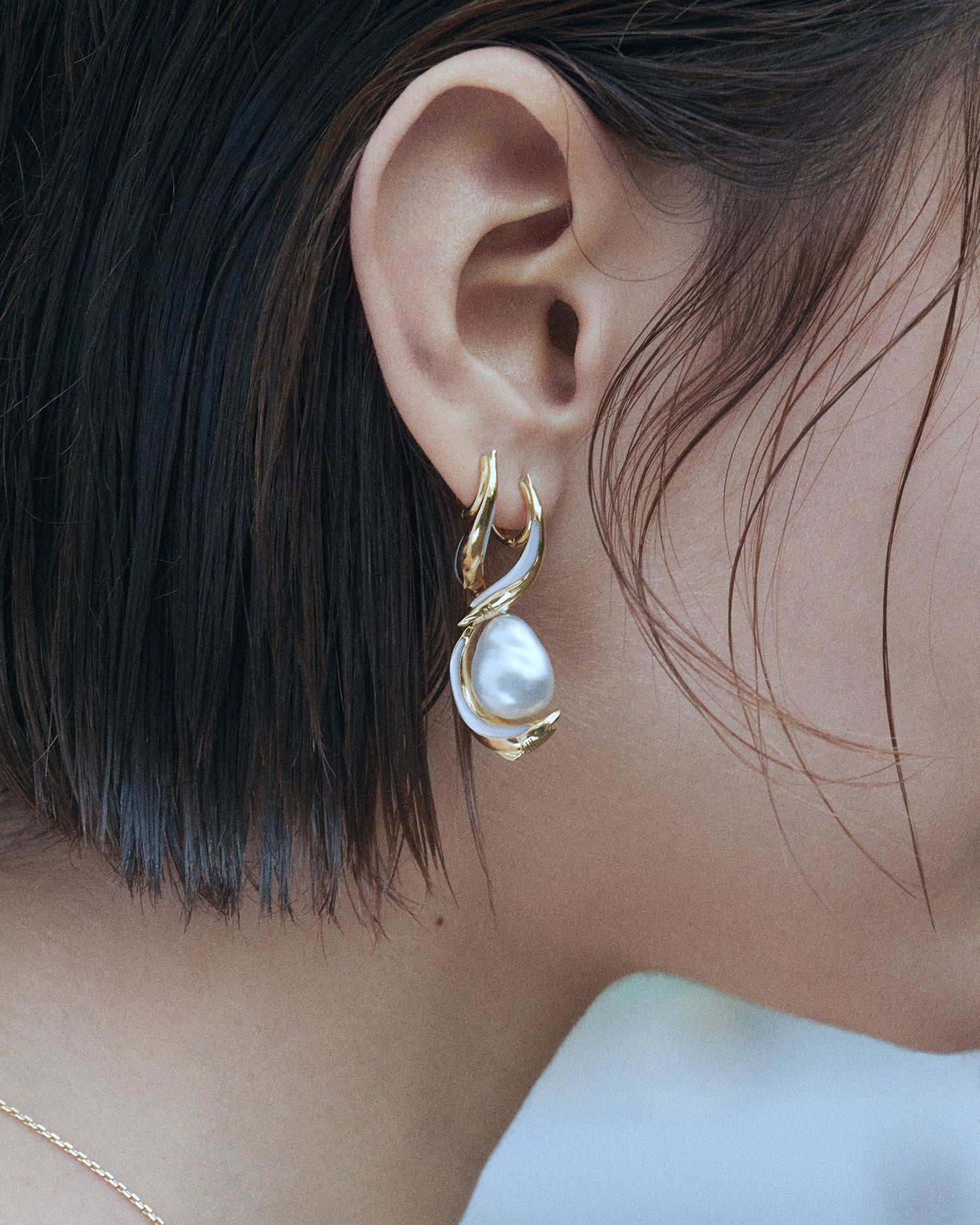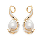 SHARK SPIRAL DROP EARRINGS IN YELLOW GOLD WITH PEARL