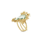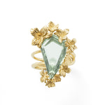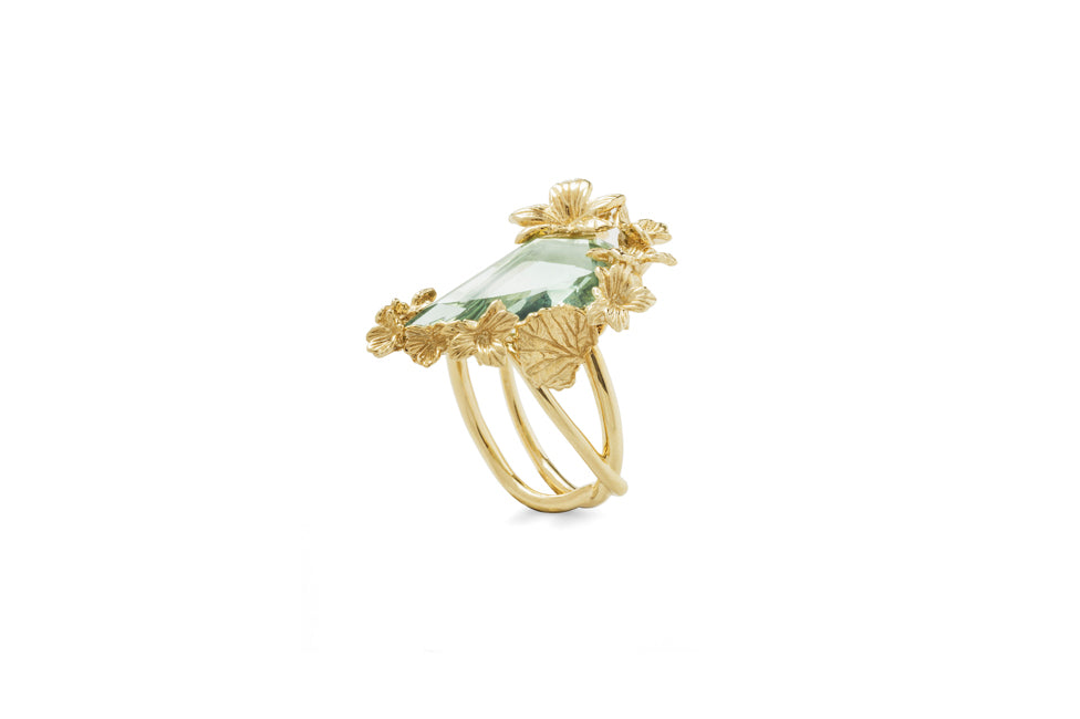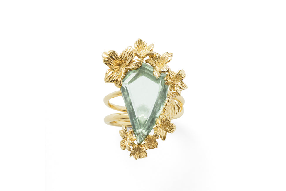 VIOLA CANADENSIS TWISTED SHANK RING IN YELLOW GOLD WITH GREEN AMETHYST