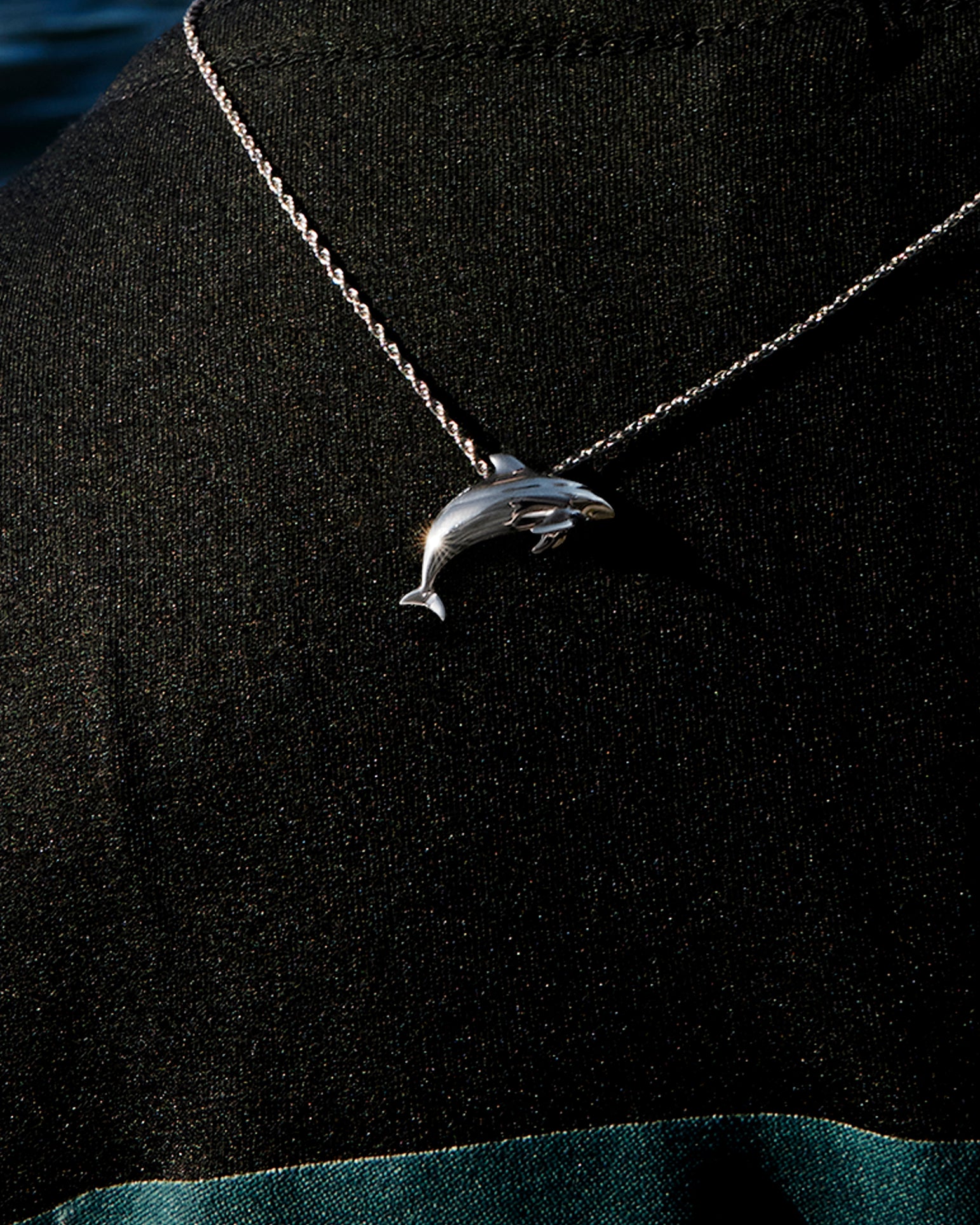 Scaled to a petite proportion, the Vaquita Small Pendant in Silver sits high on the neckline and features a mother-of-pearl accent at the closure.